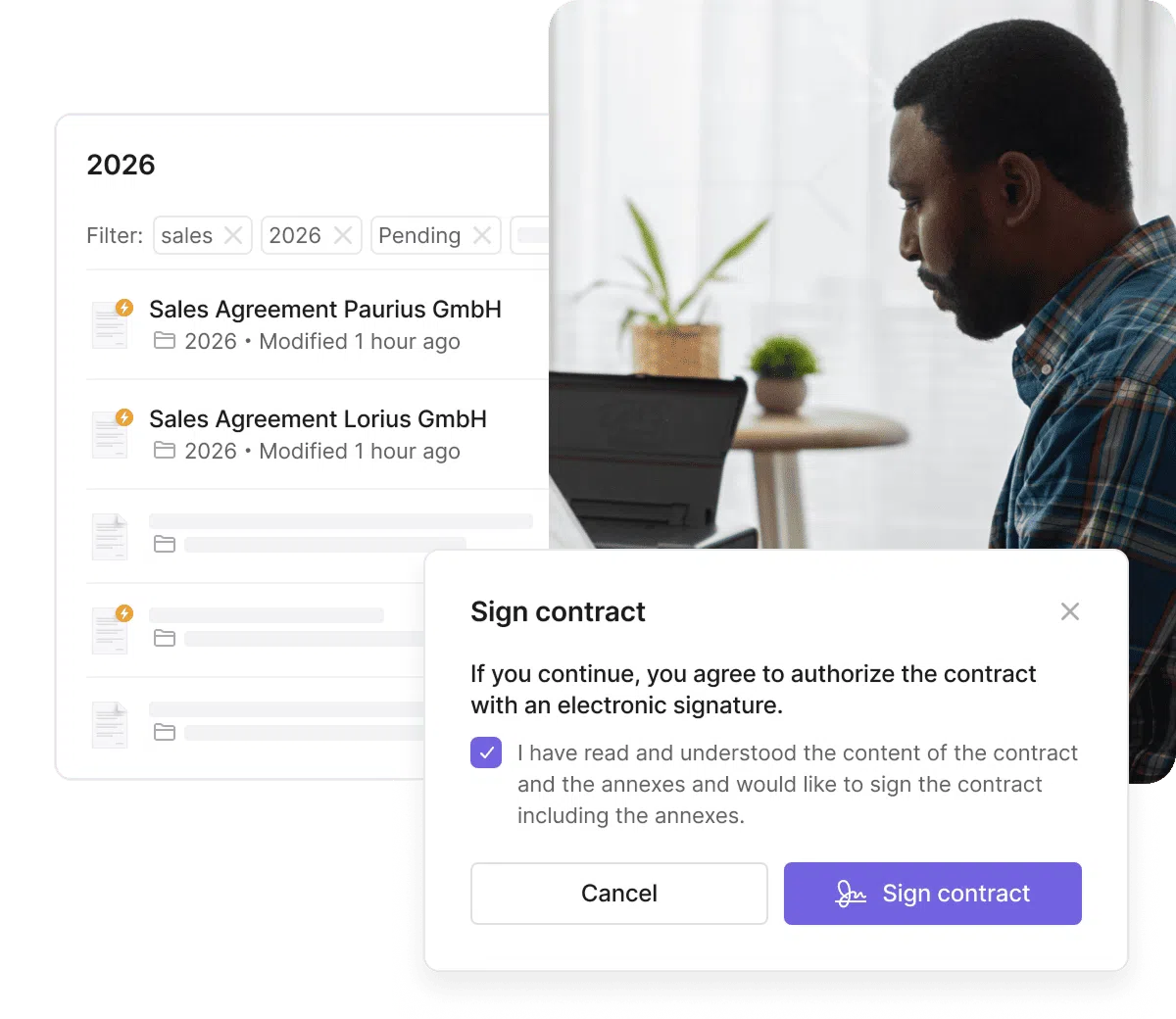 Durch integrierte Standards, Freigaben und Transparenz wird Vertragsmanagement zu einem verlässlichen, planbaren Prozess. Vertriebsteams gewinnen Klarheit, Legal behält die Kontrolle und Unternehmen reduzieren Risiken – ohne zusätzliche Reibung im Vertriebsalltag.