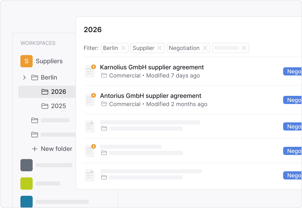 Lieferantenvertragsmanagement bezeichnet die strukturierte Verwaltung aller lieferantenbezogenen Verträge über ihren gesamten Lebenszyklus hinweg. Dazu zählen Vertragserstellung, Verhandlung, Freigabe, Ablage, Verlängerung und Beendigung. In der Praxis haben viele Organisationen Schwierigkeiten, da Lieferantenverträge über E-Mails, gemeinsame Ordner oder einzelne Systeme verteilt sind und sich dadurch nur schwer konsistent verwalten lassen.