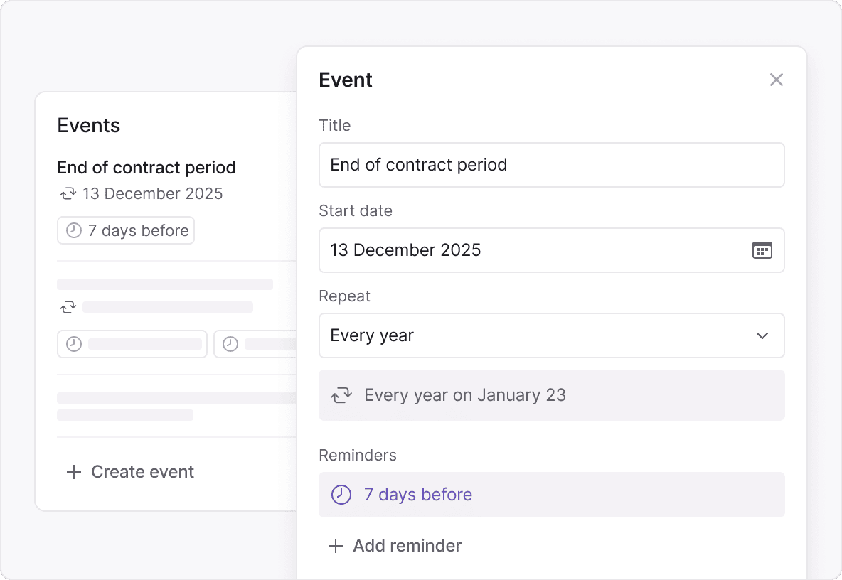Inhubber überwacht alle Vertragsfristen zentral und versendet automatische Erinnerungen rechtzeitig vor kritischen Terminen. Einkaufsteams erhalten frühzeitig Benachrichtigungen und können Verträge prüfen sowie fundierte Entscheidungen proaktiv treffen. Dieses strukturierte Fristenmanagement reduziert Risiken und stellt sicher, dass Lieferantenverträge den geschäftlichen Anforderungen entsprechen.