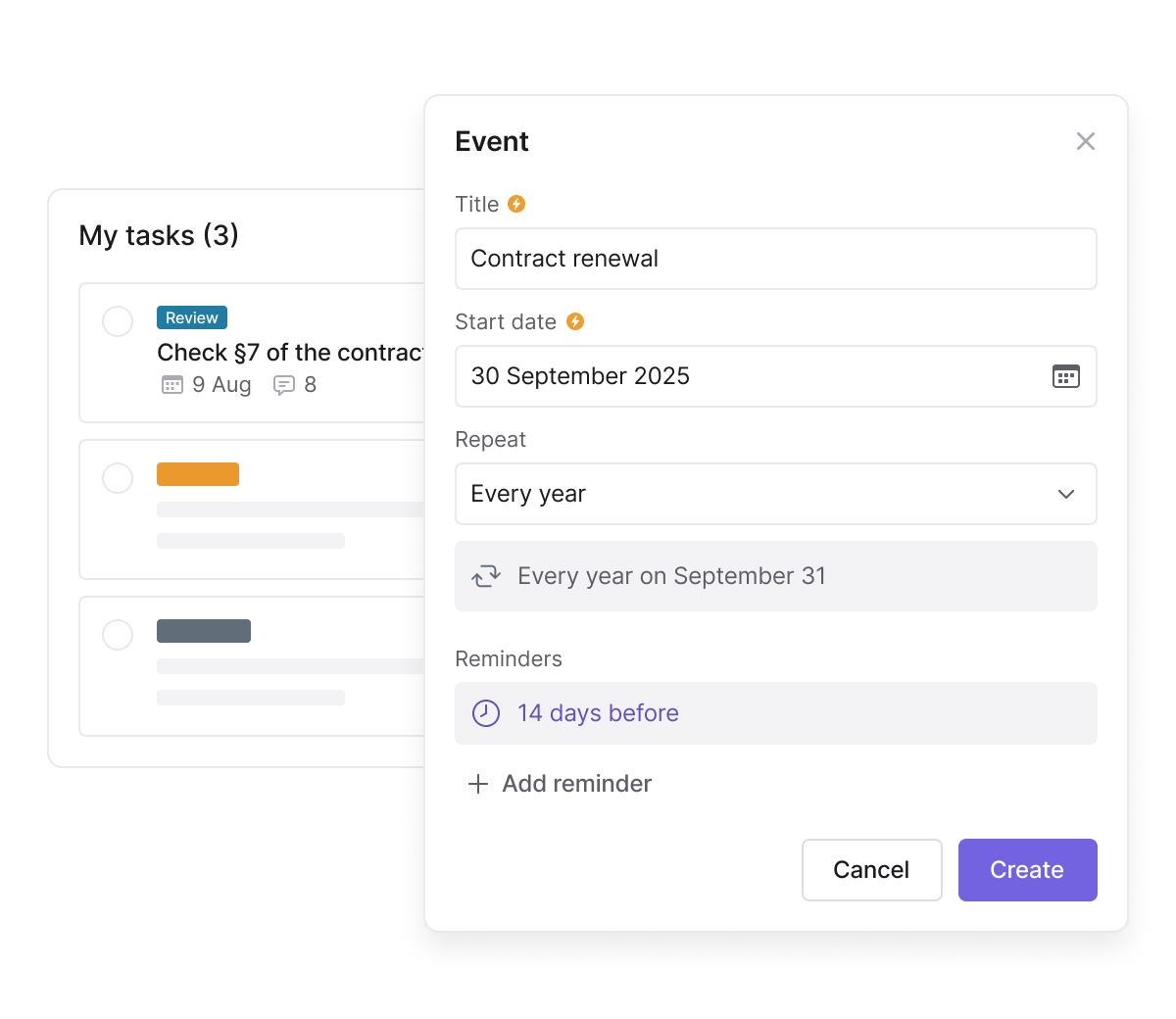 Trotz aller Bemühungen bleibt das manuelle Obligation Tracking ein arbeitsintensiver, fehleranfälliger Prozess, der juristische Teams belastet und Organisationen Compliance-Risiken aussetzt. Die kumulierten Kosten verpasster Fristen, fragmentierter Transparenz und administrativer Ineffizienz untergraben sowohl den Wert als auch das Vertrauen in die Rechtsabteilung.