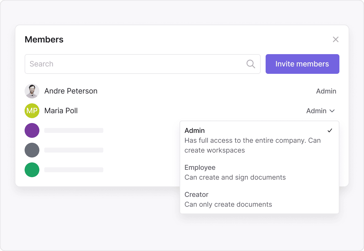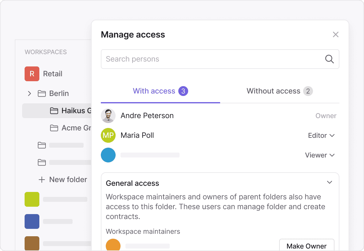 You can segment rights across departments (e.g., HR, Procurement) or project workspaces, keeping audits structured and data separation compliant.