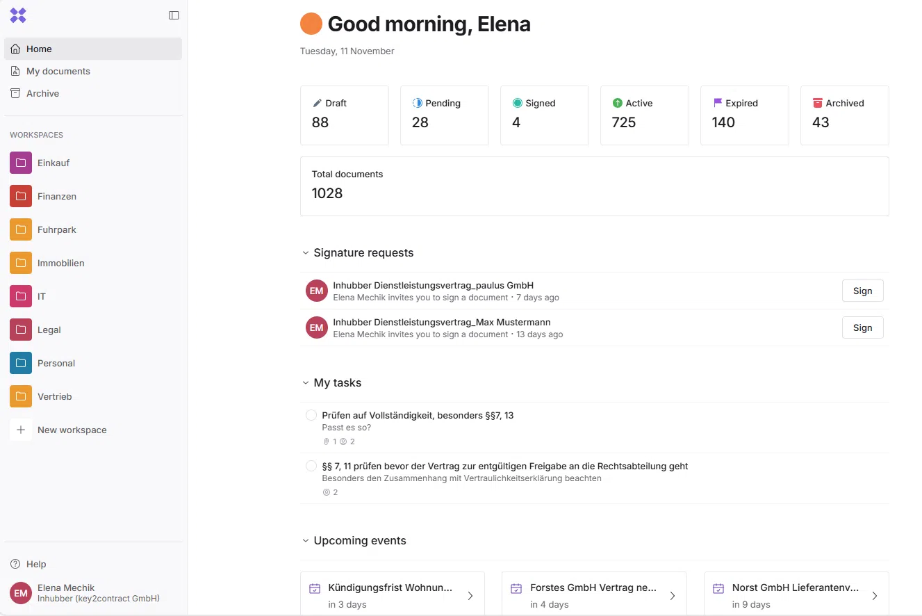 As businesses grow, so does the complexity of managing their contracts — from supplier agreements and NDAs to customer deals and framework contracts. Missing a renewal date or storing outdated versions can lead to costly mistakes. That’s where Inhubber (key4contract GmbH) comes in — a secure, intelligent, and user-friendly solution for contract lifecycle management (CLM) and digital signatures.
